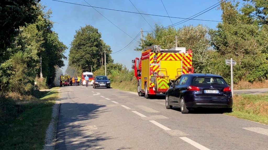 2019-09-19 10:24 UTCA Belgian F-16 fighter jet has crashed in western France and one of the pilots is caught on a high-voltage electricity line