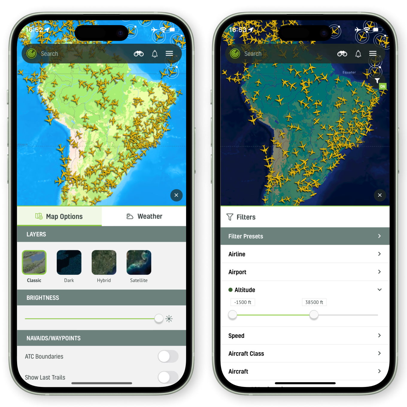- Flight Feed - This feature shows you a list of aircraft that are currently being displayed on your smartphone screen.